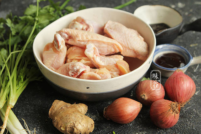 【材料】:鸡中翅 4个、鸡翅根 4个、红葱头 3个、姜 适量、香菜适量、甜面酱 1大匙、蚝油 1汤匙、淀粉 1茶匙