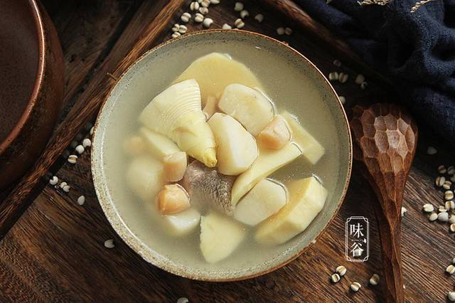 春笋性味甘苦寒,善于清热除烦、除湿、利水;干贝的加入让这汤鲜上加鲜,而瘦肉又能补充营养,提高体质,再加上马蹄,清甜润肺,这些最常见的食材组合在一起,味道鲜美,有良好的益气滋阴、健脾祛湿、开胃消食、清热生津等作用,适宜于一家大小饮用。