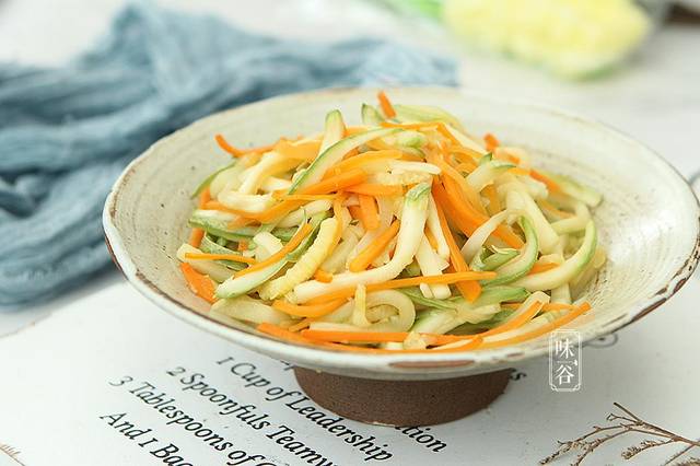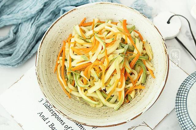 炒西葫芦丝是我家经常在餐桌上吃到的菜之一,连吃5天都不腻,做起来非常省时哦,喜欢原汁原味的味道,很清香,搭配胡萝卜随便一炒就是一道下饭菜,色泽非常漂亮,喜欢这道菜的朋友可以试试。简简单单的一道家常菜,美味营养还本领大。 西葫芦里面的维生素和水,可以让皮肤更加水润光泽,对皮肤暗黄的人群来说是一道美容食品,西葫芦还可以治疗便秘,西葫芦富含的维生素,能够促进胃肠蠕动,加快人体新陈代谢,对人体排毒养颜,预防便秘有很好的疗效,还有就是西葫芦中膳食纤维的含量非常丰富,加上西葫芦属于低脂肪,低热量的食材,肥胖的人可以适当多吃一些。