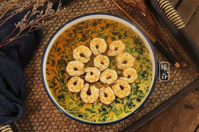 【材料】:菠菜 200克、鸡蛋 3个、鲜虾 适量、牛奶 30ml、盐 半茶匙、生抽 2汤匙、油 半汤匙、水 适量、料酒 少许