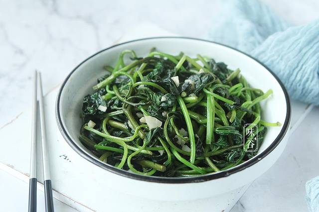 红薯叶,又称地瓜叶,即红薯生长过程中的茎上的叶子,这个菜小时候从春天一直吃到秋天,2块钱一把,便宜又美味,真的是百吃不厌。相对于红薯叶来说,大家食用比较多的还是红薯本身,殊不知红薯上面的叶营养价值比红薯的还要高,它还有着“长寿菜”的称号。胡萝卜素含量达到近6000微克,比胡萝卜还高将近1.5倍,而且其蛋白质在绿叶菜中也是佼佼者,维生素C比柑橘要高出一倍多。经常食用红薯叶有预防便秘、保护视力的作用,还能保持皮肤细腻、延缓衰老。