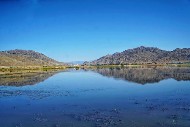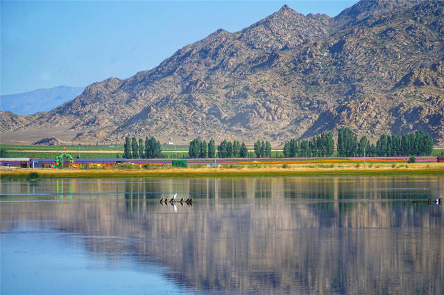 我们的车奔驰在去往可可托海的路上,当经过可可苏海的时候,被这里的美景吸引,特意停下来拍照,可可苏海又被当地人称为野鸭湖,位于可可托海南侧,同为富蕴地震断裂带断陷盆地里的湖泊洼地。可可苏海是野鸭等水禽栖息的天堂,湖中生长的芦苇每年都在变化着位置。