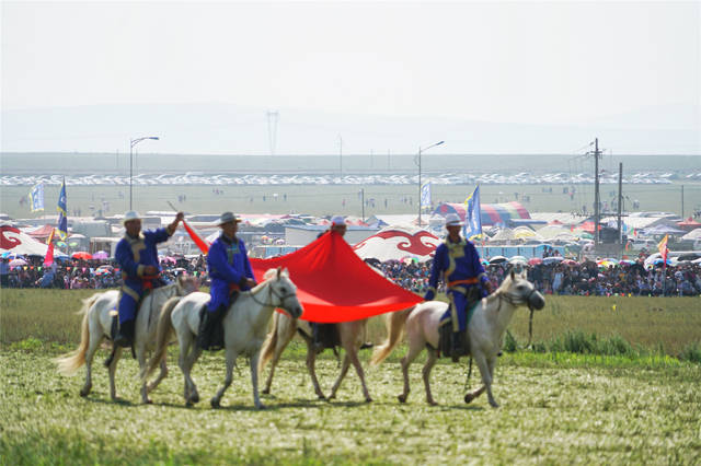 美丽的草原我的家,风吹绿草遍地花,当熟悉的旋律在我耳畔响起,当鲜艳的五星红旗在草原勇士的簇拥下,缓缓走过锡林郭勒那达慕的现场,我知道,我又回到了自己热爱的这片草原,锡林郭勒那达慕,属于草原儿女的盛大节日在我的面前缓缓拉开序幕。
