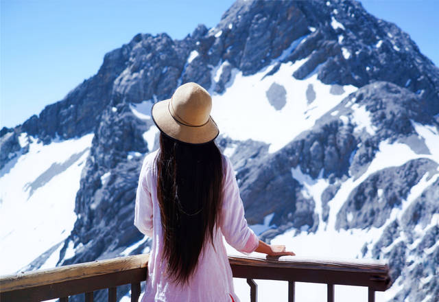 如果你来到丽江,站在狮子山上俯瞰,鳞次栉比的屋顶远方,有一座巍峨的高山在蓝天白云下,格外醒目,那纵横交错的山峰最高处,皑皑白雪和碧蓝天空形成鲜明的对比,第四次来丽江,从海拔2200的丽江古城出发,到海拔3100米的甘海子,坐缆车直线上升到4506米的冰川公园,再徒步攀登到4680米的雪山高峰,玉龙雪山以纯净的白、澄澈的蓝,—-向我表白。