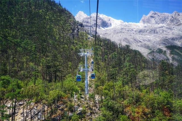 从丽江古城出来,开车两个多小时,就来到了玉龙雪山,中途会来到一个补给站,领取我们的羽绒服和氧气瓶,一大早排队上山的人就很多了,取票后,坐大巴车来到海拔3100米的甘海子,然后就开始坐缆车上山了。