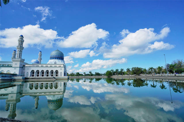 从昆明飞亚庇,看到亚庇水上清真寺的时候,还是会觉得很惊喜,天上的云朵流淌过水面,蓝白色调的清真寺在蓝天白云的相伴下,有着岁月静好的美,一袭穆斯林长袍,我安静的等待,总有理由让我相信,跨越孤独,就会走向远方。