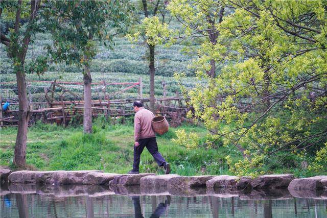 在西湖区的茅家埠,沿着水畔慢慢的行走,就可以看到三三两两的茶农背着竹篓去茶田,他们要赶在清明节气之前,把最好的茶叶采摘回家。