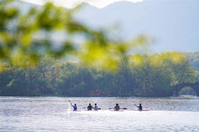 久久凝视着西湖这片深深浅浅的绿,仿佛跌落进一个深邃的梦境里,几声清越的鸟鸣,让这里更加幽静,湖畔盛开的花朵,安静的看着我发呆,两只飞鸟结对飞过,轻轻掠过水面时,溅起小小的水花,涟漪一圈圈荡漾开来,这里是杭州西湖,是我来了还想来的地方。