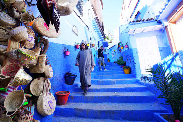 不知道算不算机缘巧合,正好在西方的情人节这天,来到了舍夫沙万,这个北非的蓝白色阿拉伯小镇,张开欣欣然的眉眼,用明媚的天气,灿烂的蓝色迎接我们的到来。摩洛哥之行,除了撒哈拉之外,我最期盼的就是舍夫沙万了,如果能在这里拍上几张美美的照片,也算了了心中夙愿,放下行李,就和朋友相约走进了小巷。
