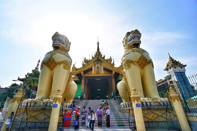 朝圣缅甸大金塔,1000 多张纯金箔,让大金塔在阳光的照耀下金碧辉煌,7 吨多重的黄金,塔的四周挂着1千多个金、银铃铛,塔顶1260 公斤重的金属宝伞,周围嵌有红宝石 664 颗,翡翠551 颗,金刚石443 颗,其中的一块钻石重达76克拉。来的时候正在维护,依然信徒众多。金碧辉煌的缅甸仰光大金塔 ,与印度尼西亚的婆罗浮屠塔和柬埔寨的吴哥窟一起被称为东方艺术的瑰宝,是驰名世界的佛塔,