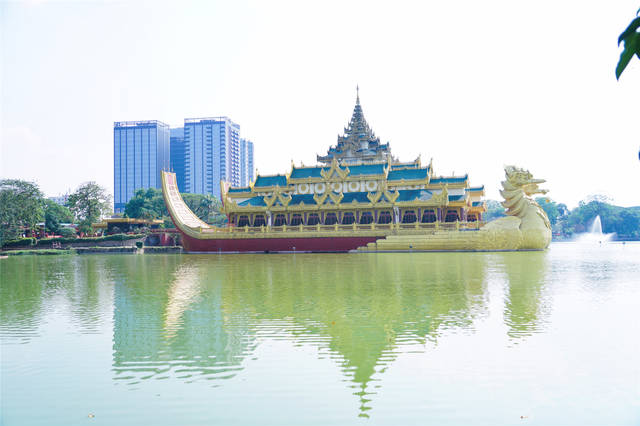 缅甸旅行,很多人选择的目的地基本都是曼德勒、蒲甘和茵莱湖,作为曾经首都的仰光,若不是大金塔,估计那些专业的摄影人是不会来仰光了,这次我们一下火车就包了一辆出租车,让他带着我们逛一下仰光经典的景点,中午吃饭,司机小哥直接就把我们拉到了皇家湖的卡拉威皇宫餐厅。