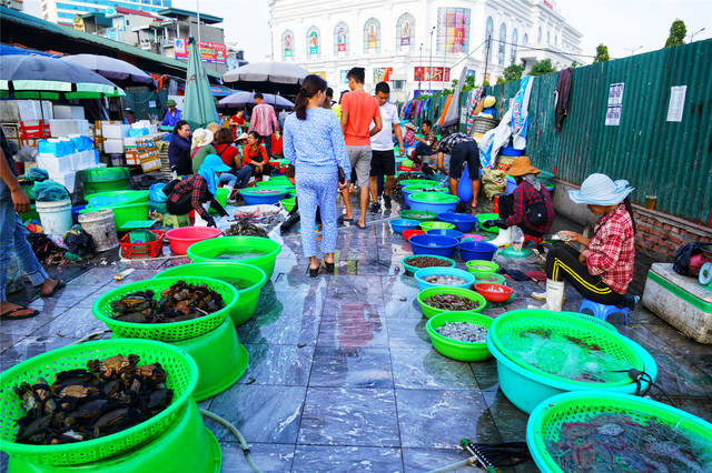 走在海鲜市场,扑面而来的都是海产品的腥味儿,越南下龙湾的海鲜市场,有着浓郁的生活气息。这里一天到晚都很热闹,摊贩们把最新鲜的鱼虾蟹生蚝收拾的干干净净,这里距离海边码头只有一百多米,如果自由行来这里旅游,不妨买一些海鲜,回去让饭店给加工一下,一般收取百分之十五加工费。