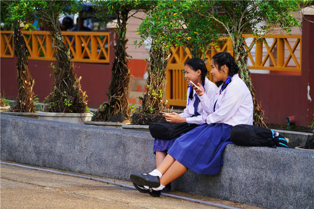 我来到圣母玛利亚天主教堂的时候,也许正好是当地学生放学的时间,在教堂旁边,看到很多身穿校服的学生在这里闲散的坐着,她们三五成群的呆在一起,或欢声笑语,或默默看书,看到我经过,她们会羞涩的笑笑。