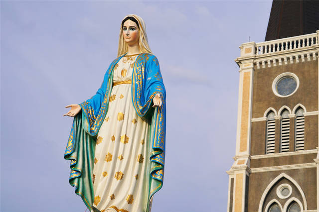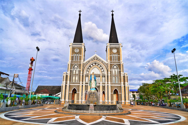 泰国最大的天主教堂,教堂内的圣母像全身镶满宝石
