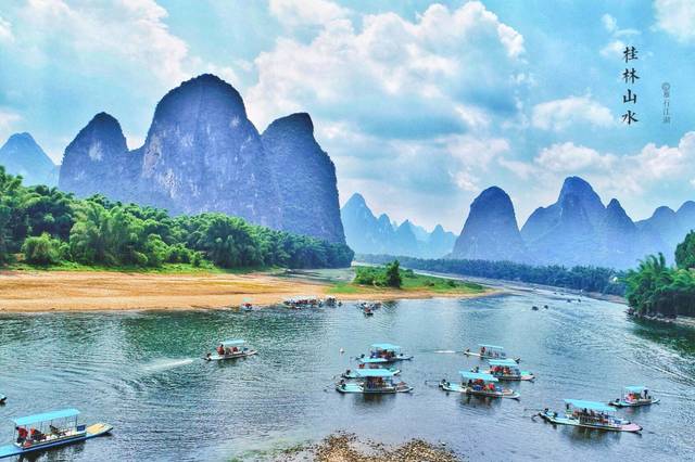 千峰环野立,一水抱城流,一条全场一百多公里的漓江,风景秀美如画,著名的桂林山水就在漓江上。兴坪古镇这一段山水尤其有名,就是因为我们现在流通的二十元人民币的背景图,就在这里拍摄的,沿着满是鹅卵石的的河床走到江边,满眼如画般的景致,让人觉得心旷神怡。