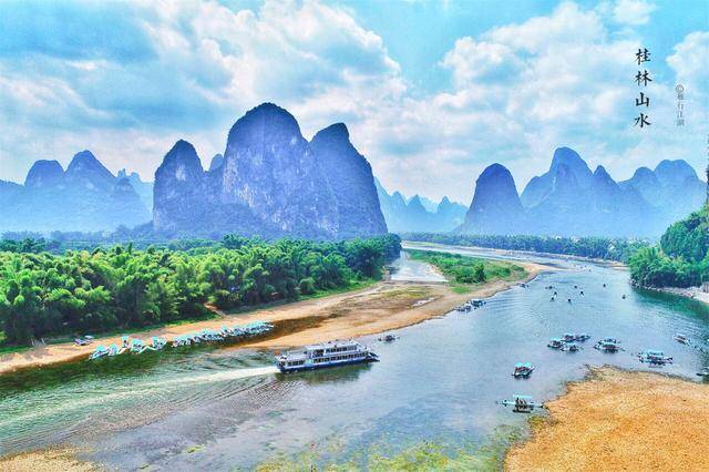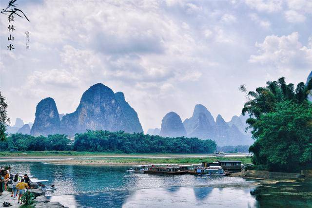 千峰环野立,一水抱城流,一条全场一百多公里的漓江,风景秀美如画,著名的桂林山水就在漓江上。兴坪古镇这一段山水尤其有名,就是因为我们现在流通的二十元人民币的背景图,就在这里拍摄的,沿着满是鹅卵石的的河床走到江边,满眼如画般的景致,让人觉得心旷神怡。