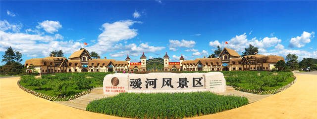 丹东是中国东北地区最温暖最湿润的地方之一,这里的年平均气温是9度,素有"北方江南"、"东北苏杭"之称,叆河风景区就位于丹东凤城,一条草河一条叆河在此处交汇成一幅天然的山水画卷。沿着湿地行走七公里后,我们就来到了叆河风景区的门口。