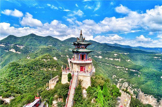 云丘山的祖师顶,因北方之神真武大帝在这里修炼42年之后终于功德圆满,白日升天,玉帝下令敕镇北方,统摄玄武之位,遂称“祖师”。要想到达祖师顶,需要经过云丘山的悬崖峭壁之路,再通过三重天的考验,方可登顶,这次的行程,我选择了反向而走,先坐2号缆车,走到山上后,再登顶祖师顶,沿着三重天一直走下去。