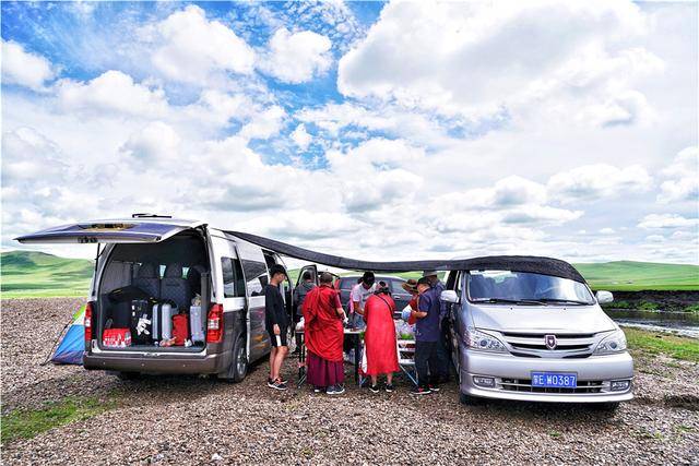 在大草原上的第一顿午餐,我们决定自己动手,司机刘凯带路,提前在海拉尔的菜市场买好了野餐需要的一切食材和水果,当车经过三个小时的草原之路,行至莫日格勒河畔的开阔地带时,我们决定停车,开始准备午餐。