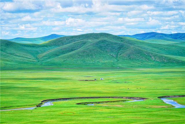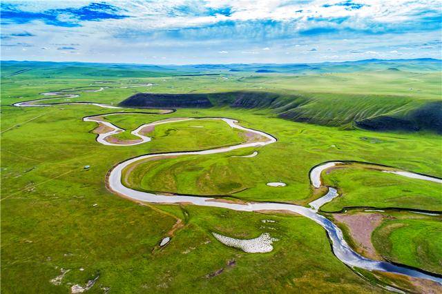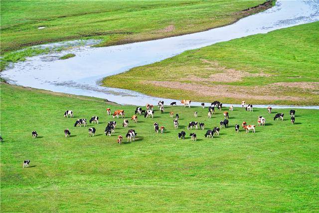站在高处俯瞰莫日格勒河,那草原上婉转曲折的河流,犹如一条飘动的丝带,给无边无际的绿带来不一样的灵动,成群的牛羊在河畔自由的吃草,对于远处人们的欢笑声,好像已经习以为常。