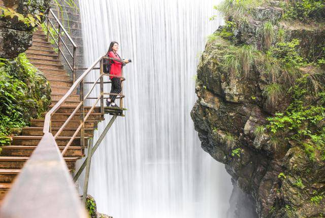 距离石台5公里的醉山野,还没看见瀑布,就听见了瀑布的声音,绿色氤氲了整个峡谷,微风穿越树叶的缝隙,带来夏季的清凉,沿着蜿蜒的山路信步走来,水流淙淙,古木参天,深深的呼吸,整个人都醉在这片绿色里了。