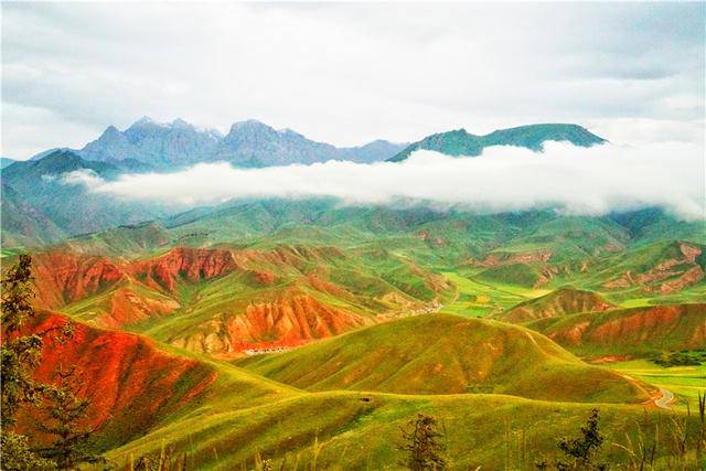 青海大环线的最后一站,来到了祁连卓尔山,清晨的雨,丝毫没有阻挡我登山的兴致,在烟雨蒙蒙中登卓尔山,依然被她的美貌所迷恋,那深深浅浅的绿意和红色的山脉交相辉映,一副大自然画卷跃然眼前,大朵大朵的云在祁连山脉的半腰上调皮的加了一圈腰带,真想扯下来一片摸一摸质感是怎样的,而巍巍青山之间升腾起的云雾,让整个卓尔山宛若梦幻中的仙境。