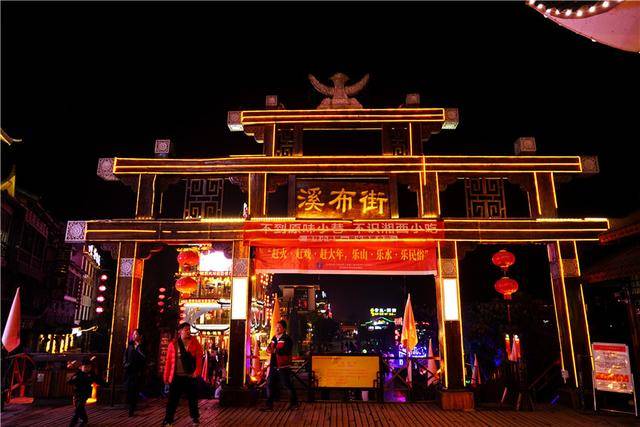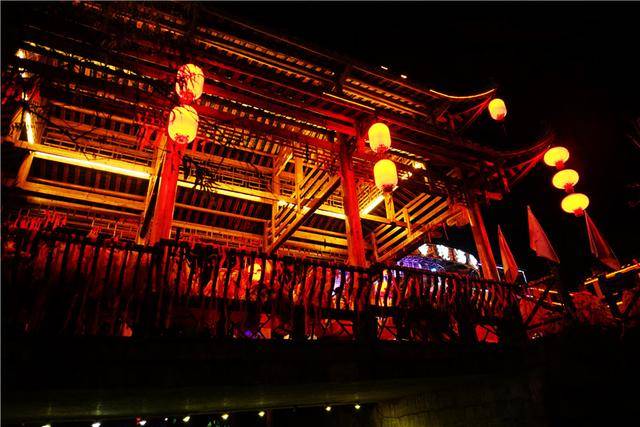 一条蜿蜒曲折的小河穿越溪布街,穿越风雨桥,迤逦而行,河两岸杨柳依依,风雨桥上大红的灯笼高悬,散发着古韵。溪布街历来以其古老,秀丽,繁华而闻名于世,古街,古巷,古民居见证了湘西古老的历史文化底蕴,灯光迷离,行人穿梭其间,散发着浪漫温馨的气息。