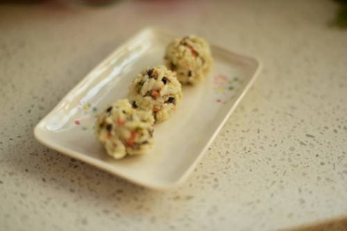 今天要来学做十个月宝宝的手指食物,蔬菜鳕鱼饭团子。这是一道能够锻炼宝宝手指细小动作,手指灵活性的一款小副食,也是一款荤素搭配的主食,更是一款可以让妈妈们带到外面去,带着宝宝出去玩,或者在外面吃饭的时候能够方便携带的一道菜。