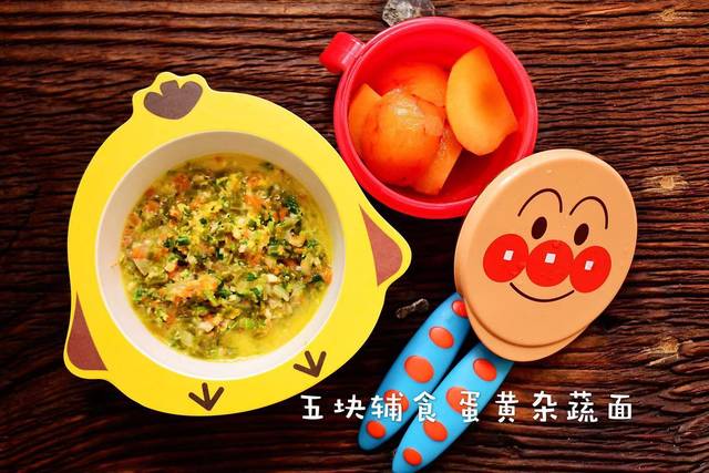 今天我们这是一款适合七个月小朋友吃的小颗粒的面,叫做杂蔬蛋黄面,这个里面不仅有蛋黄,而且还有很多蔬菜,不同种类的蔬菜也是可以让我们的小宝宝来自己选择~