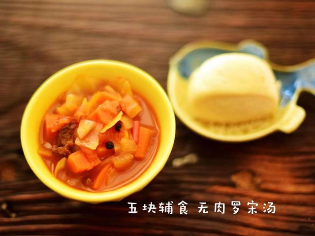作为一个吃货,我的童年记忆里有一种汤,那么美味,只有在爸爸妈妈的结婚纪念日 才能喝到。那就是:罗宋汤,酸酸甜甜的味道,还有奶油香,里面大块的土豆胡萝卜 和炖的软烂的牛肉,配上一块面包,好吃的我自己就能喝下去一整碗。不知道有多少人和我有同意的记忆呢?今天做的罗宋汤适合十一个月以上的宝宝哦~