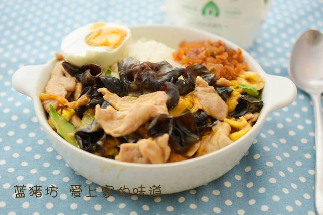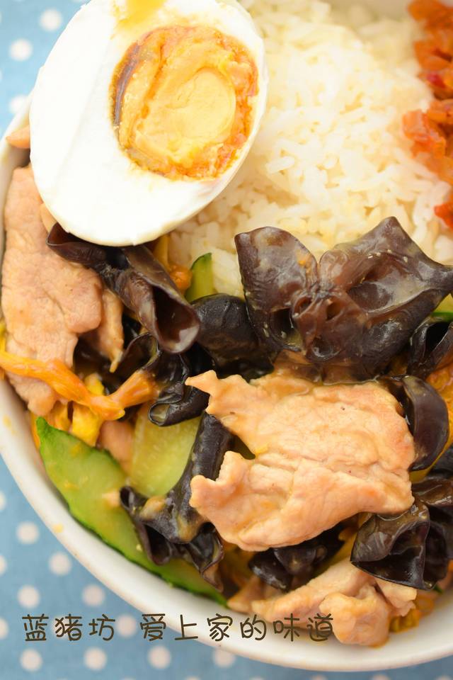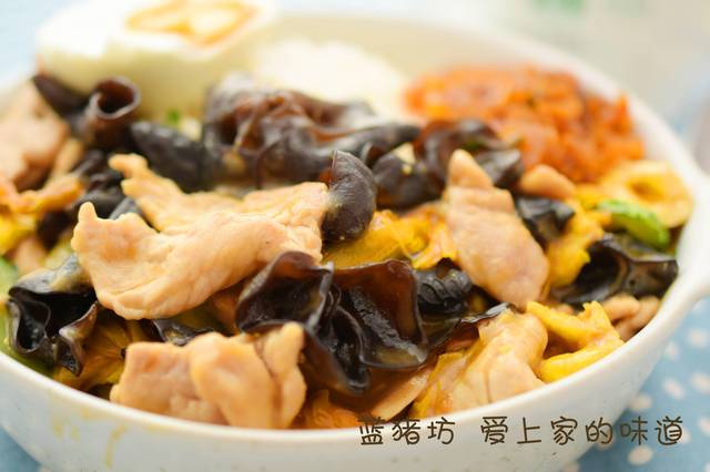 要说盖饭那种最好吃!那一定是木须肉,香脆的黄瓜,和腌制到入味的里脊肉,鸡蛋和肉丝就着米饭一口吃下去,满满的都是些幸福感。