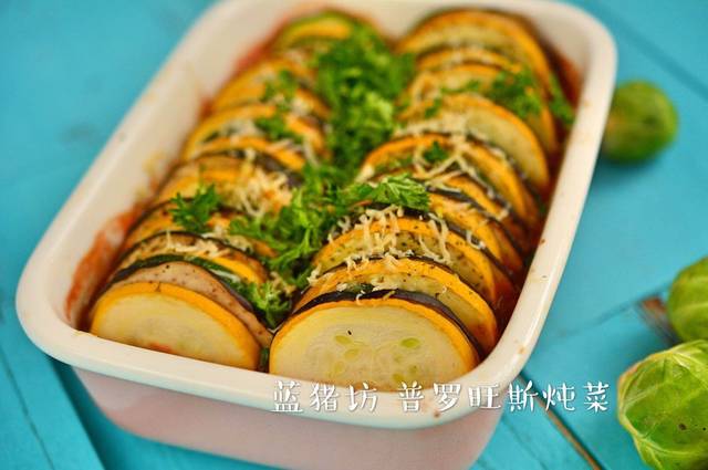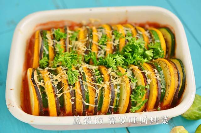 普罗旺斯炖菜之于普罗旺斯,就像地三鲜之于东北,是极普通的家常菜。传统的普罗旺斯炖菜,茄子节瓜番茄红椒切丁,加上橄榄油和当地香料炒香后炖熟即可上桌。吃的是时令蔬菜的清甜的鲜美,摆盘比较粗糙,但风味甚好。