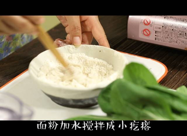 1,面粉加水搅拌成小疙瘩,最后用手抓成均匀的疙瘩