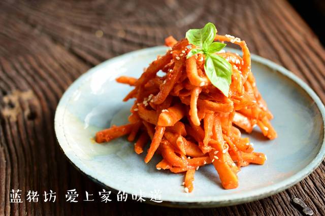 辣拌桔梗,这是一道朝鲜很传统的小菜。每家每户都会做来吃。尤其是在炎热的夏天。