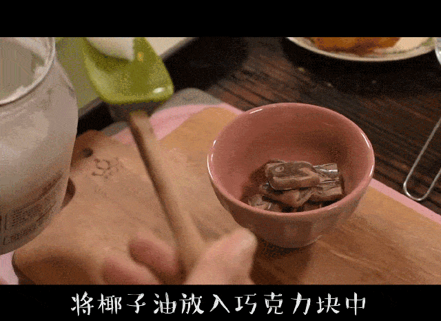 1,将椰子油放入巧克力块中,隔水加热后倒入牛奶搅匀