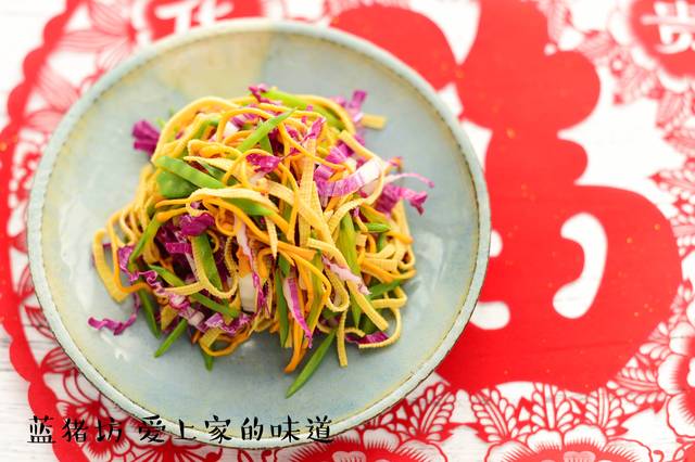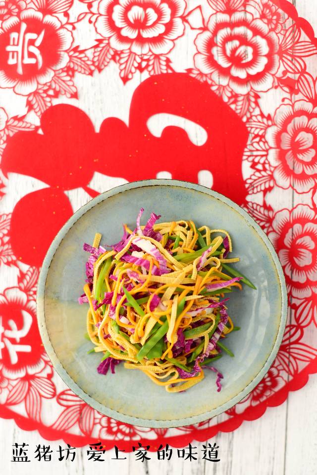 新的一年,蓝猪坊先祝大家四季平安。光说太没诚意不是,所以做了这道由4种蔬菜和豆制品做成的爽口温拌菜。