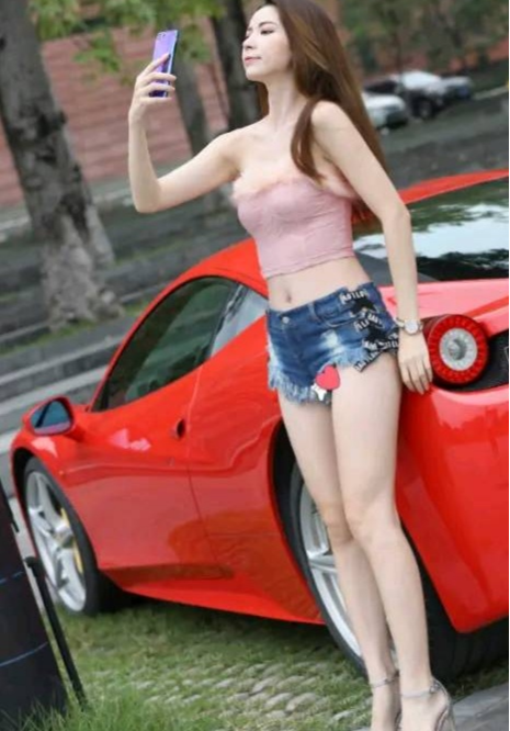 性感少妇,豪车前拍照,一种车模的感觉。