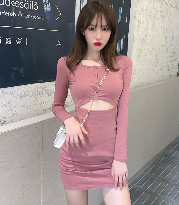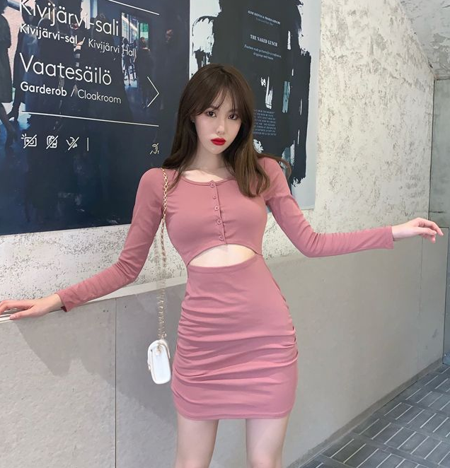 其实除了裙子的上部分的设计之外,更重要的是肚脐部分的设计可以很好的突出我们的曲线,完美的勾勒出小蛮腰的状态,而且这种款式可以让我们看上去完全是穿着两件衣服的感觉,这样的一种错觉设计也是一种比较具有前卫时尚感的设计理念,再用粉色衬托出优雅和气质的同时,这种设计理念可以让我们走在街上不会让人觉得比较缺乏时尚感,反而会因为一些比较突出的小细节展现出不一样的魅力。
