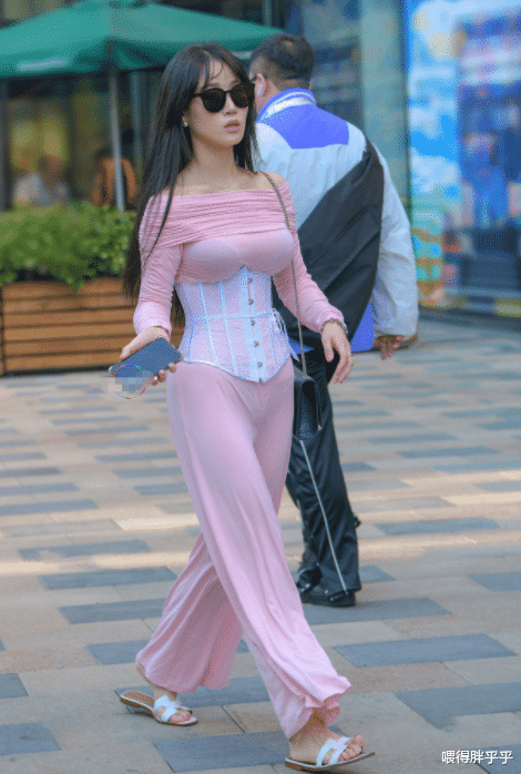 图片中我们可以看到小姐姐出门逛街,穿的是塑腰,而塑腰外穿也真的是个性十足。是小姐姐这塑腰软穿的装扮,虽然能够让腰身看起来更加的纤细,可是这样小姐姐的臀部显得有些厚重。这可得多练练啊!小姐姐穿着一件粉色连体衣,宽松的粉色连体衣,让小姐姐看起来更加随性洒脱,而小姐姐的身材也比较丰满,前凸后翘非常的迷人。之间的设计更是凸显出好看的锁骨,不仅在展露身材方面有绝对的优势,更加凸显出时尚感。一双拖鞋也十分清爽。