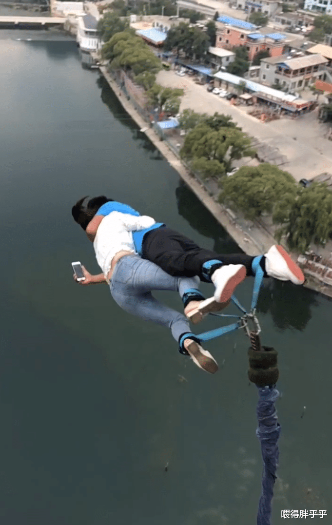 现在很多的年轻人都非常的喜欢追求刺激,他们认为生命不在于不断的挑战。看图上的这一对小情侣,他们真的是非常的大胆了,两个人加一起去蹦极了,需要用蹦极来证明自己的感情吗?感觉看起来还非常的不错呢。