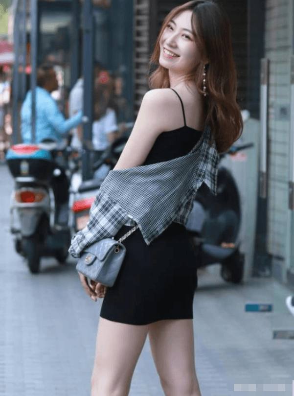 高跟鞋与紧身裙搭配的女孩,这回头甜美的笑容能不能照进您的心呢?