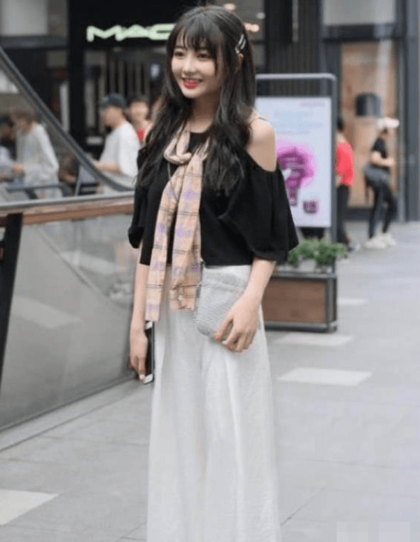 面带微笑时尚大方的妹子,看得出是精心打扮一番的,黑色时装上衣搭配白色阔腿裤,能体现不一样的青春气质,气质甜美穿搭出优雅时尚的名媛范。