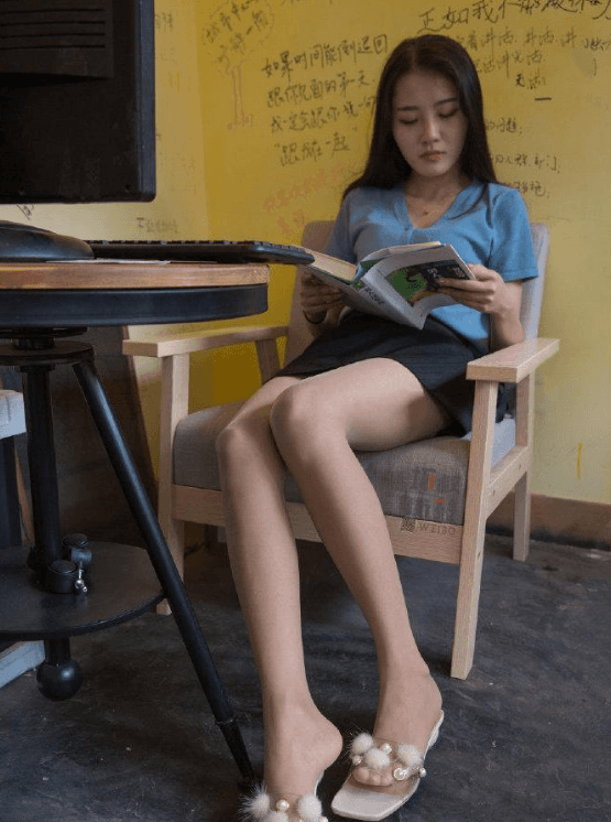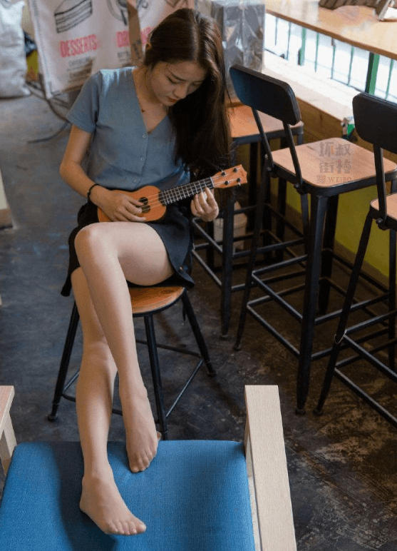 穿着蓝色宽松上衣的少女,看着很有艺术气息!这位气质优雅的少女,她穿着一件蓝色宽松上衣,搭配着一条黑色短裙,裙子侧面有着独特绑带设计,看着很是别致时尚。这位少女在认真看书,不时还拨弄下琴弦,看着很有艺术气息!