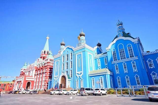 嫩红、天蓝、彩色的葱头壮的小穹顶、巨大的套娃造型,啊呀,这不就是童话公主的城堡么~