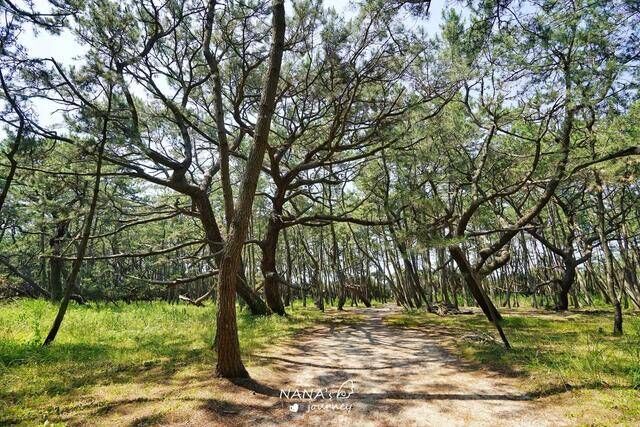 日本人特别喜欢松原,这里也是几百年前为了防止大风而种植的黑松,所以松树都是朝着一个方向长的,十分神奇,所以穿一席白色或红色长裙,能拍出大片的感觉啊~