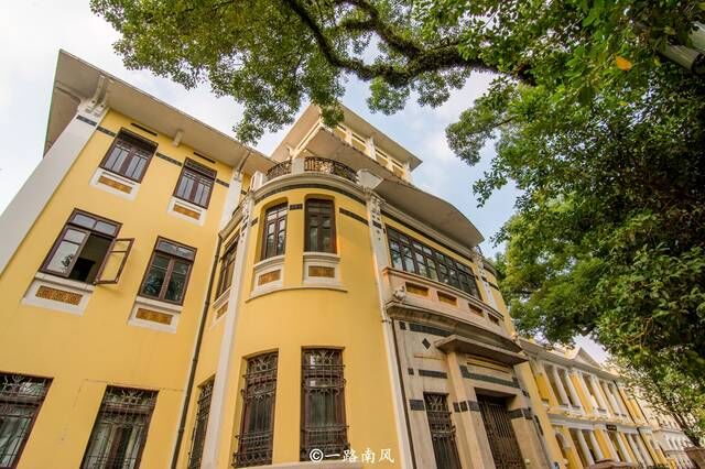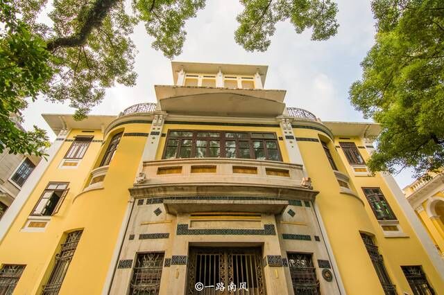 沙面岛上的建筑经过年月的洗历,曾经都是斑驳的旧色调,现在是焕然一新的彩色调,或白色、或米色、或绿色,或土灰色的建筑诉说着大时代的沧桑与荣光。