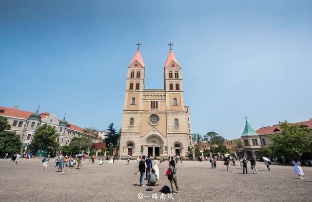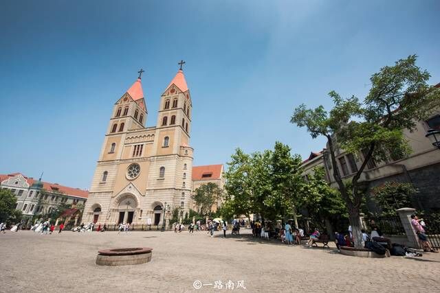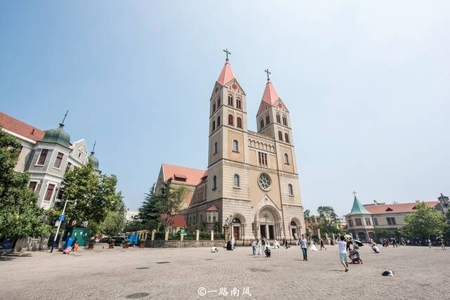 青岛是我国著名的旅游城市,其旅游资源和度假氛围比海南三亚更具多样性,准确来说是文化底蕴更加深厚。曾经的历史给青岛留下大量包括别墅、洋楼、教堂在内的欧式建筑,这些欧式建筑以德国风情为主,其中最有代表性的是位于浙江路的圣弥厄尔教堂,一般称为天主教堂。