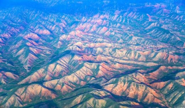 【摘要】在一亿五千多万年之前的白垩纪至第三纪时期,喜马拉雅造山运动中发育构成的赤色岩系,随着地壳抬升,长时间风化和流水侵蚀,保留下很多赤色砂岩,构成了一带梦幻艳丽的地质奇迹。 穿越万米云层向我国版图的几何中心望去,眼前呈现一片延绵起伏的彩色山峦,层层叠叠,绚烂瑰丽,好像一幅油画镶嵌在天地之间;从远处瞭望,各种形状的地质景观纵横林立,红、黄、橙、绿、白、青灰、灰黑、灰白等多种颜色,把很多沟壑、山丘装点得惊艳绝伦。
