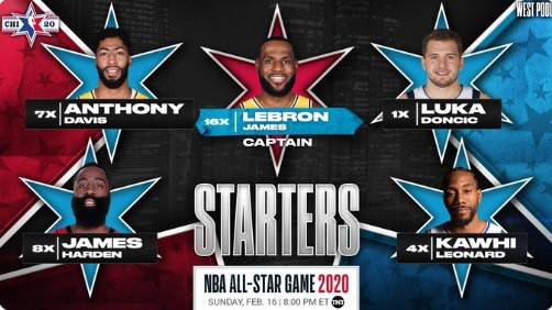 北京时间1月24日,NBA全明星首发正式公布。西部方面,勒布朗-詹姆斯(队长)、安东尼-戴维斯、科怀-伦纳德、卢卡-东契奇、詹姆斯-哈登成为今年的全明星首发。