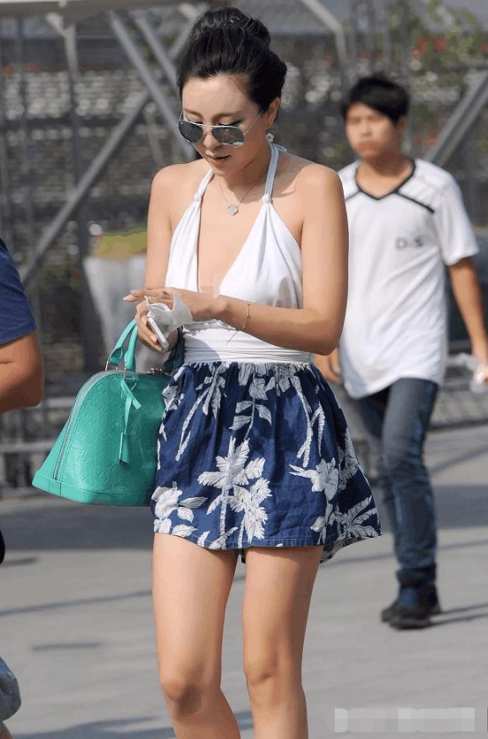 尤其吊带的设计更是显得脖子白皙纤细,手臂也是十分匀称的,充满美感。脚踩一双“恨天高”,将双腿的比例更是拉大了不少,分分钟腿长一米八的感觉。衣服紧身的设计将这位辣妈的小细腰强调了出来,腰肢不盈一握将女性特有的柔美表现了出来,整个人看出来也是特别的精神有气质。一点都看不出这是一位三十来岁的人呢。脸上虽然戴了一副大大的墨镜,但是仍然不影响她的美,反而增加了一种时尚感和个性。